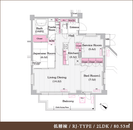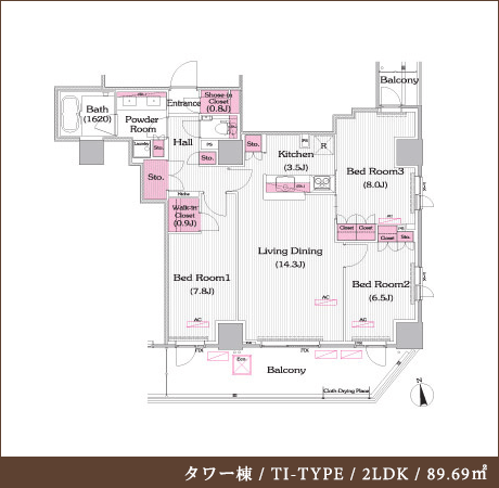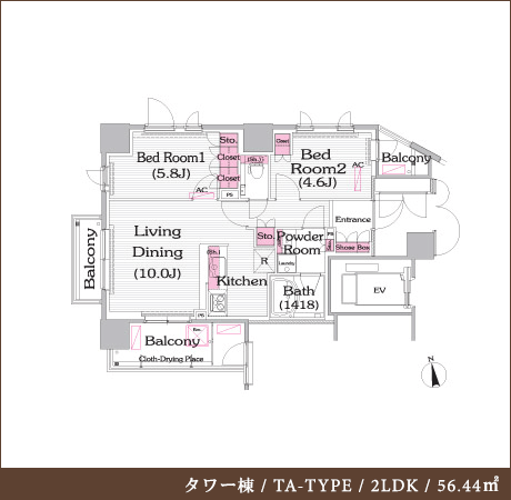 専有面積は約40uから約54uとなっており、主にシングルからDINKS層を想定したタイプとなっています。